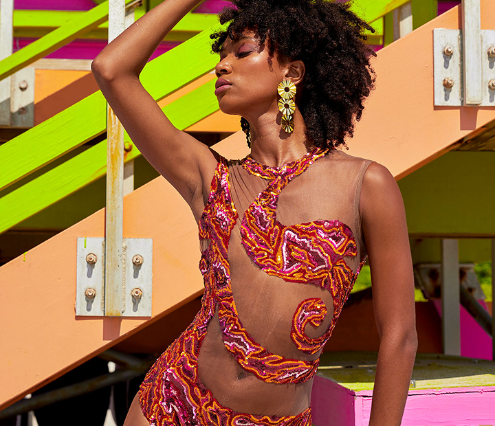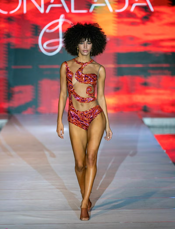 Onalaja is a contemporary fashion brand founded by Nigerian designer Kanyinsola Onalaja, known for her bold fusion of Nigerian opulence and modern craftsmanship. After debuting at Miami Swim Week, Onalaja expanded into resortwear and swimwear with her collection “Flamingo Paradise,” featuring intricate embellishments, feathers, and sculptural silhouettes that celebrate femininity, strength, and artistic heritage.